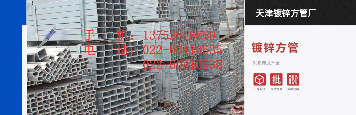天津鍍鋅方管廠長期銷售方管,鍍鋅方管,熱鍍鋅方管,鍍鋅方管廠,鍍鋅方矩管廠家等產(chǎn)品。      公司憑借豐富齊全的規(guī)格品種,過硬的質(zhì)量,合理的價(jià)格,完善的服務(wù),不斷地受到新老用戶及業(yè)內(nèi)人士的肯定和信任,我們本著及用戶之所及,想用戶之所想的服務(wù)宗旨不斷地拼搏,進(jìn)取,在此對(duì)多年來支持我們的各行各業(yè)的新老朋友表示由衷的感謝,在新世紀(jì)與各界朋友共同成長壯大,愿我們今后的合作更加愉快!  我公司恪守“以誠信為本,譽(yù)求發(fā)展”的文化理念;“聚精會(huì)神抓質(zhì)量 一心一意求發(fā)展”的經(jīng)營宗旨,始終堅(jiān)持以“創(chuàng)新是永恒的主題,超越是不懈的追求”的公司精神。以客戶需求為導(dǎo)向、客戶要求為標(biāo)準(zhǔn),愿意以可靠的產(chǎn)品和完善的售后服務(wù),竭誠為廣大的客戶服務(wù)。...